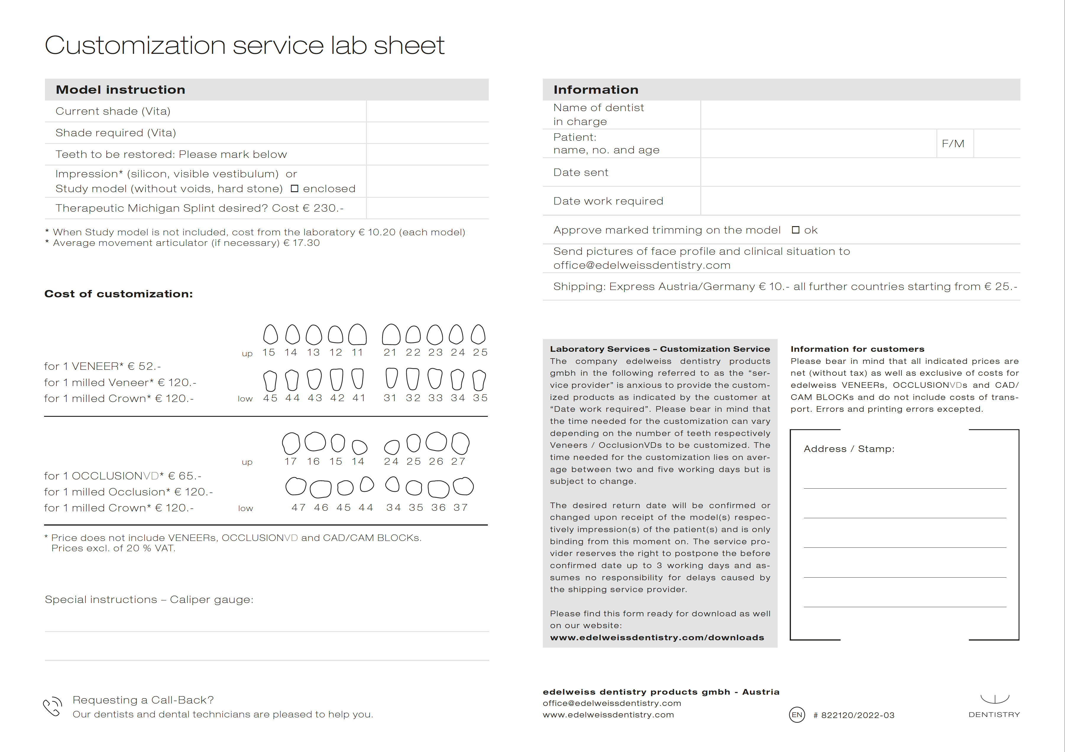 Englische Version des Leitfadens für CAD/CAM BLOCK Indikationen