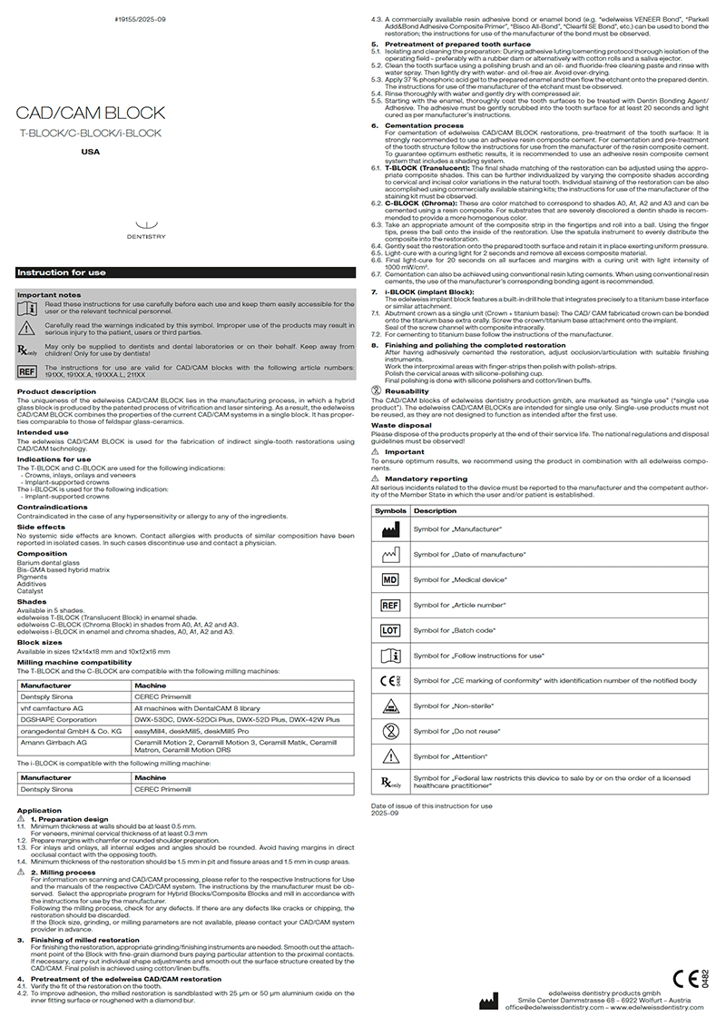 FACT SHEET - CAD/CAM BLOCK / DE